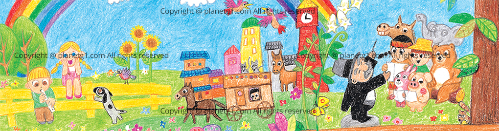 어린이 영어 음반 The Jamboree Kids 커버 및 책에 사용된 일러스트레이션입니다.